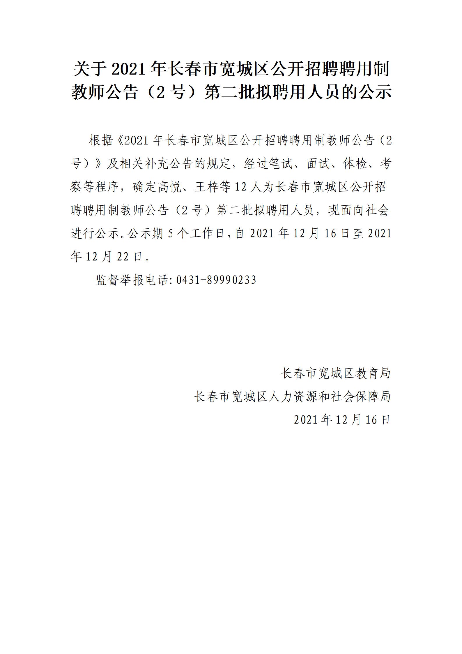 关于2021年长春市宽城区公开招聘聘用制教师公告(2号)第二批拟聘用人员的公示