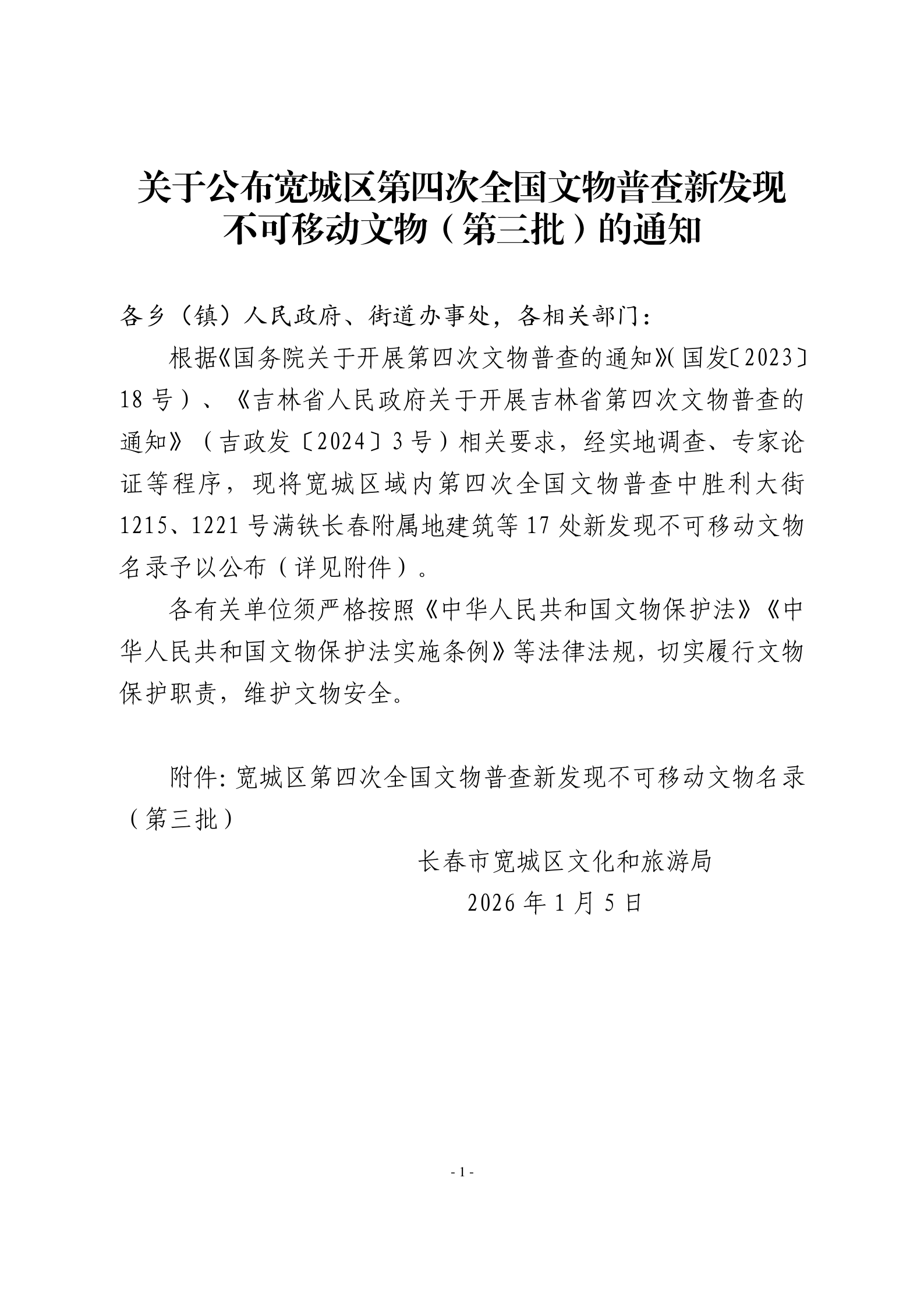 关于公布宽城区第四次全国文物普查新发现 不可移动文物(第三批)的通知
