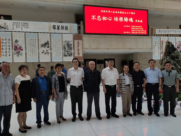 为庆祝伟大祖国七十周年华诞,全面展现宽城区老年干部群众精神风貌及区老年大学书画教育成果,8月17日,由宽城区委组织部、宽城区委老干部局、省老年大学书画研究会主办,宽城区老年书画研究会承办的“不忘初心·培根铸魂” 暨庆祝伟大祖国七十周年华诞书画展,在宽城区政府一楼大厅开幕。