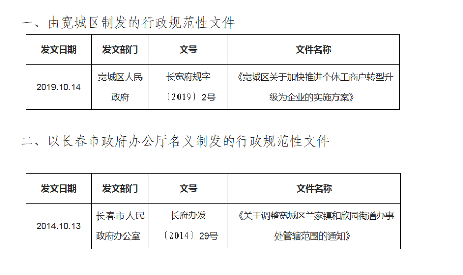 宽城区正在实施的行政规范性文件目录