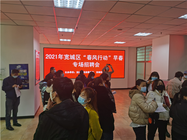 强化防疫防护,精心组织部署。按照长春市人力资源和社会保障局、长春市扶贫开发办公室、长春市总工会、长春市妇女联合会联合下发的开展“春风行动——“早春篇”文件精神,宽城区就业局在严格执行疫情常态化防控要求下,协调相关部门,精心安排,明确任务分工,周密组织实施,形成工作合力,为农民工等困难群体提供精准化就业援助,确保此次招聘会达到预期效果。