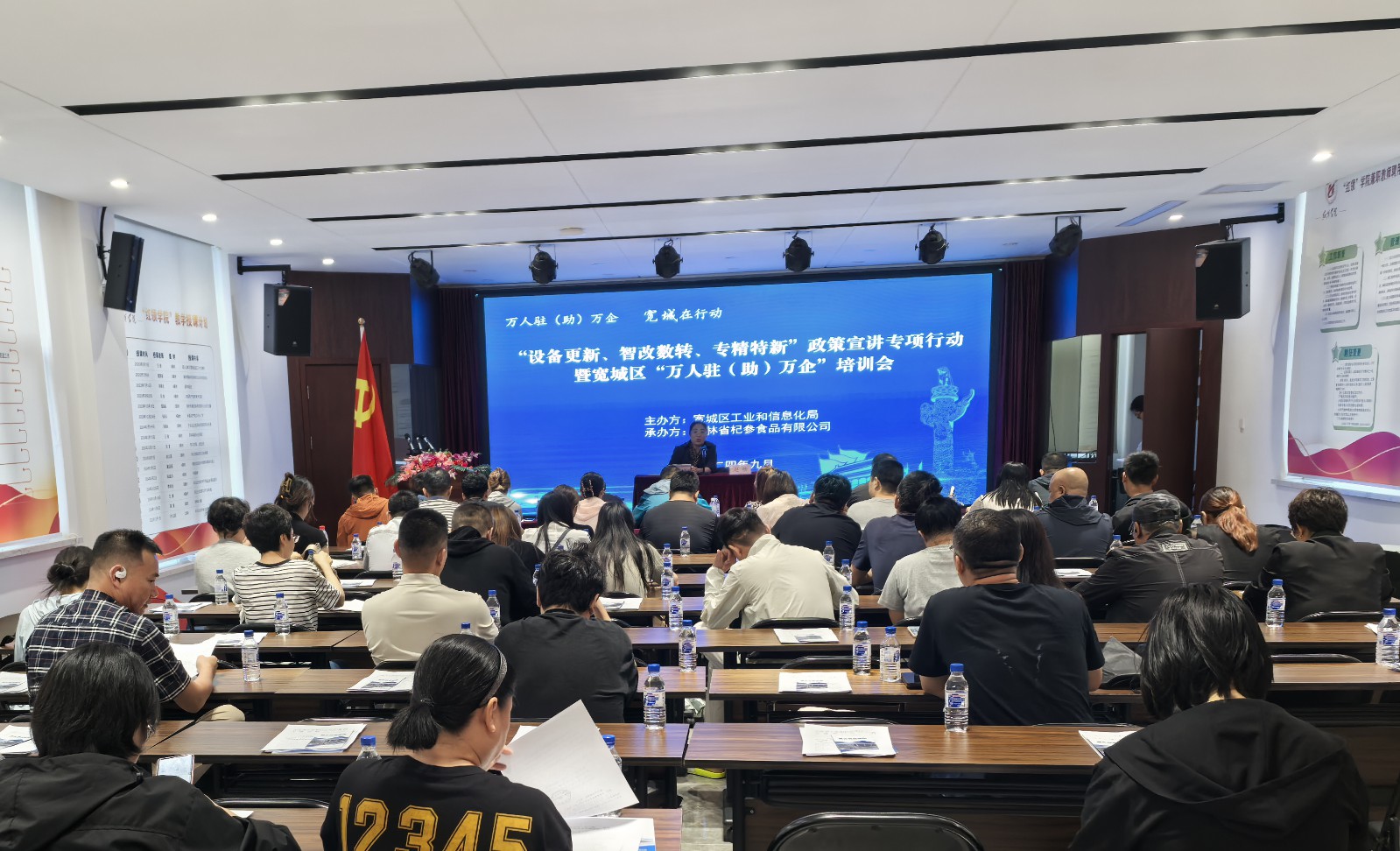 为全面落实国家、省、市、区关于经济高质量发展的工作部署,务实服务企业,推动宽城区经济平稳健康发展,9月4日,宽城区工业和信息化局在杞参集团红领学院组织召开“设备更新、智改数转、专精特新”政策宣讲专项行动暨宽城区“万人驻(助)万企”培训会,全区规规模以上工业企业、“专精特新”企业及各属地单位驻企专员代表共计80余人参加了培训。