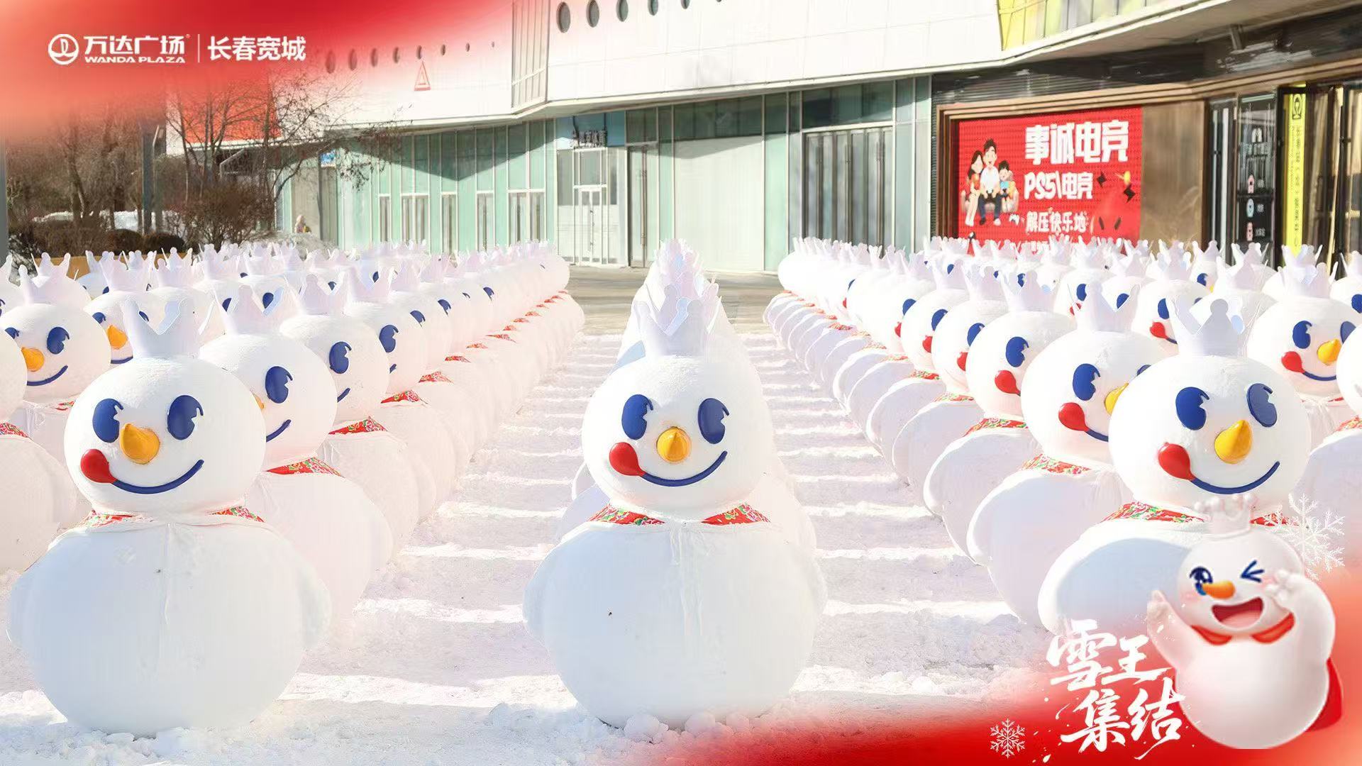 宽城万达雪人矩阵吸引游客前来打卡拍照。