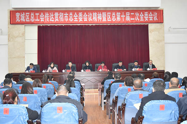 2月26日,宽城区总工会召开了传达贯彻市总全会精神暨区总第十届二次全委会议。会议由区总工会副主席戴俊马主持,区总工会副主席陈松梅传达了市总工会第十九届二次全委会议精神,区总工会常务副主席张春辉代表区总工会第十届常委会作工作报告,区人大常委会副主任、区总工会党组书记、主席张捷出席会议并讲话。