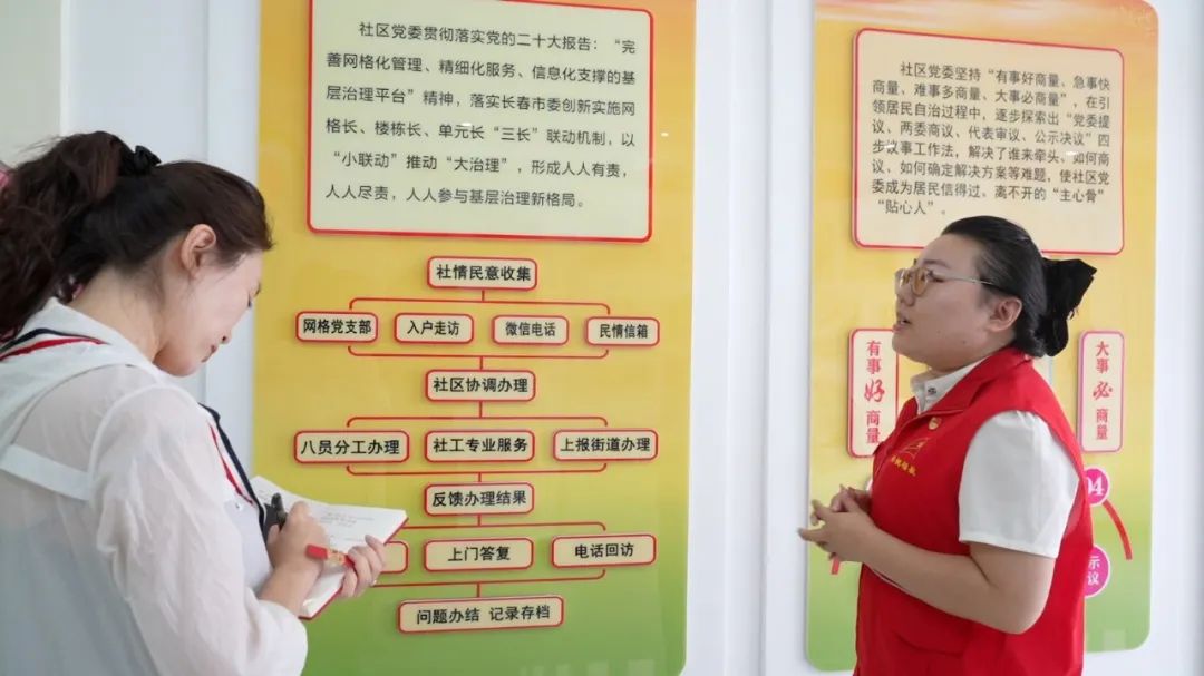 吴亚琴表示,在强化思想引领方面,社区严格落实“三会一课”和“三必帮四必到五必访”党员关爱制度,从每日一报的日常监督到每月党课的思想淬炼,再到每年政治生日的仪式感营造,社区党员始终保持着“对党忠诚、践行誓言”的先锋本色。社区建立了“社区党委—网格党支部—楼栋党小组—党员家庭户”的四级组织体系,让党员亮身份、定责任,以党小组引领楼栋“微治理”,将党组织触角延伸到小区、楼栋、居民家,充分提高了居民对党组织认同感。