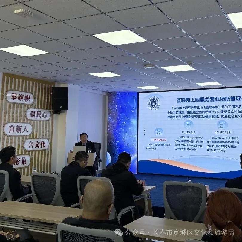 为进一步加强文化市场稳定和持续发展,10月28日,长春市文化市场综合行政执法支队联合长春市公安局网安支队、宽城区文化和旅游局(体育局),共同组织开展了文化市场普法宣传活动。活动以面对面交流的形式,围绕网吧、KTV等经营场所违规接纳未成年人问题,进行了深入的政策解读和法治宣传。