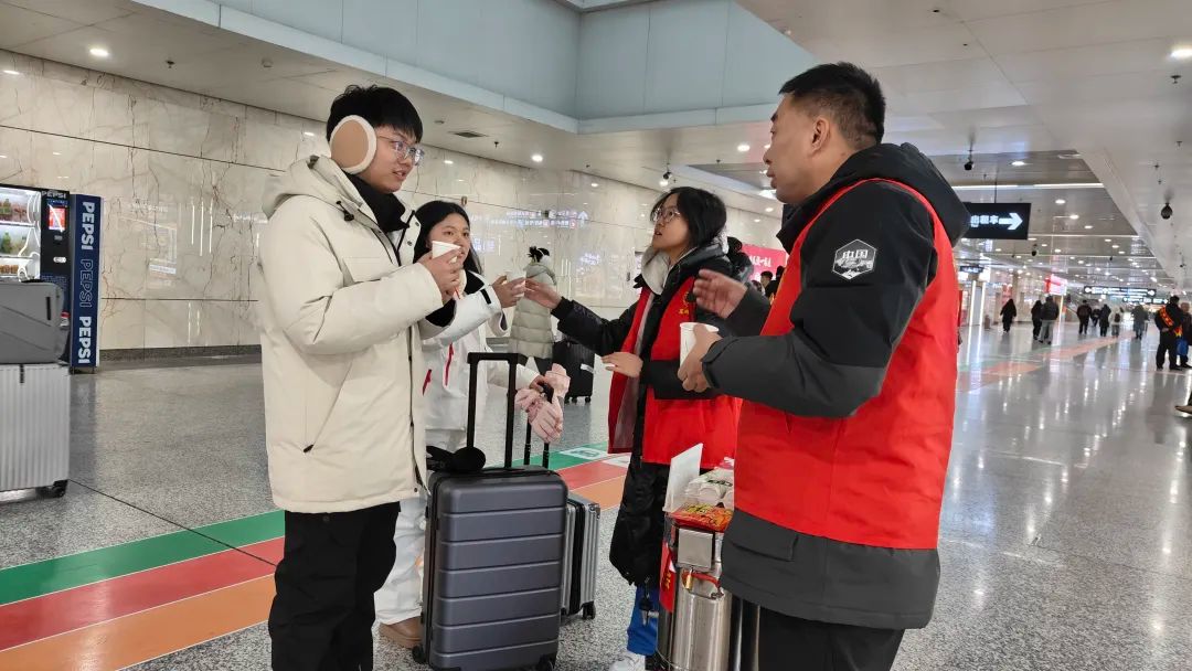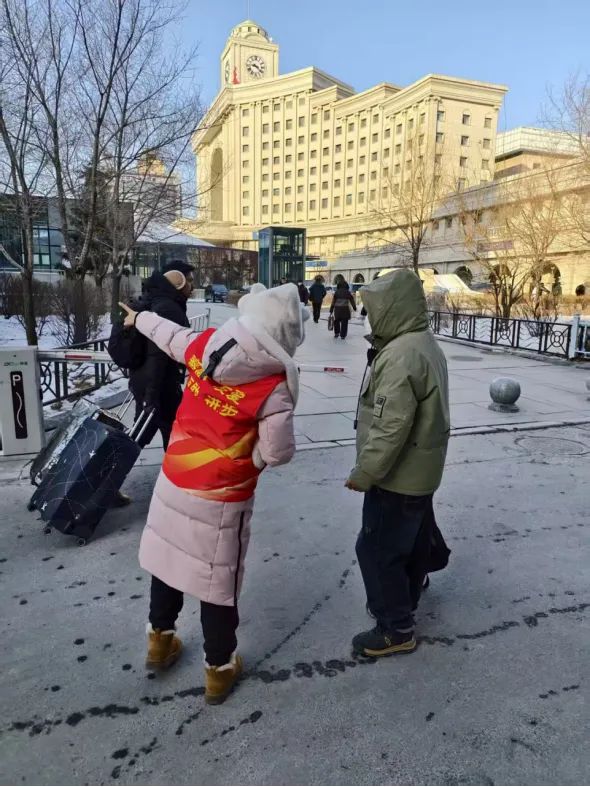 寒冬中的长春火车站及客运站,一抹抹“志愿红”格外耀眼,大学生们及爱心社会组织人士身着红色马甲,在出站口、候车室、南北通道及网约车候车区提供路线指引、行李搬运、秩序维护、免费送乘等服务。