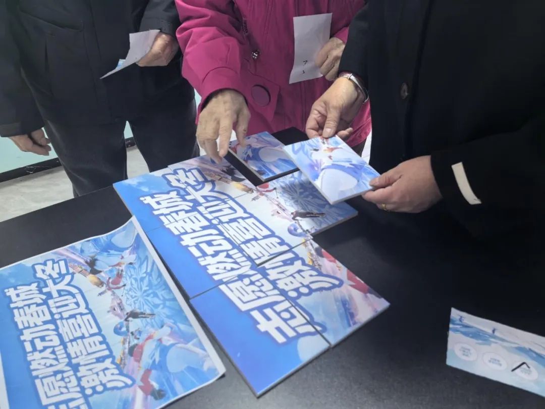 “拼聚”大冬会魅力拼图区,大家分工协作、通力配合,争分夺秒将零散拼图拼合成完整的喜迎大冬会主题图案,在齐心协力闯关的过程中,邻里间的陌生感逐渐消散,默契度不断提升,欢声笑语充盈着整个活动现场。