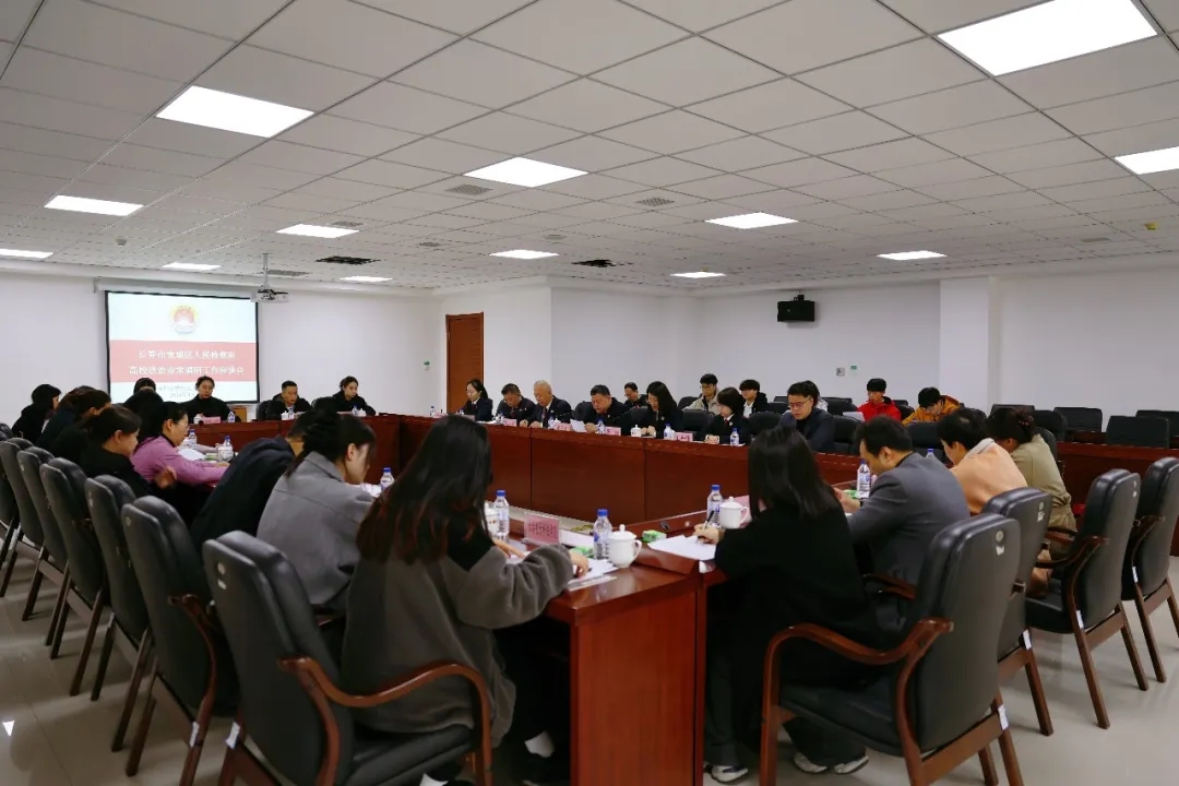 长春市人民检察院法律政策研究部二级高级检察官助理张妤、宽城区人民检察院党组成员、副检察长张春雨出席会议,宽城区人民检察院检察委员会委员赵环宇主持会议,政治部队伍建设负责人和法律政策研究室全体干警参加会议。